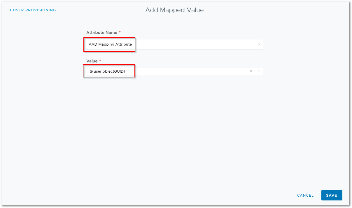 This is where I can add the AAD Mapping Attribute and give it the value of the user’s objectGUID.